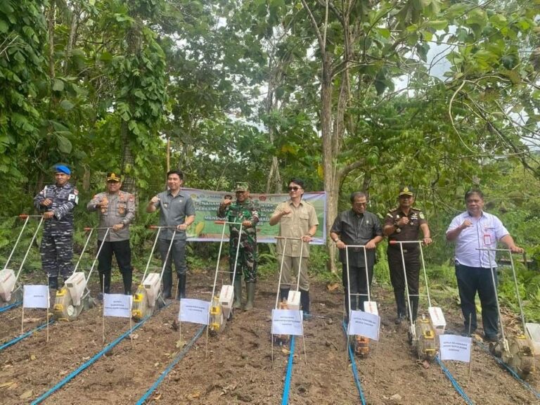 TAHUNA – Bupati Kepulauan Sangihe, Michael Thungari, S.E., M.M., bersama jajaran Forum Koordinasi Pimpinan Daerah (Forkopimda) menghadiri kegiatan Penanaman Jagung Serentak Kuartal IV dan Peresmian Gudang Ketahanan Pangan Polri secara daring, dalam rangka mendukung Program Swasembada Pangan Nasional Tahun 2025, Rabu (8/10/2025).