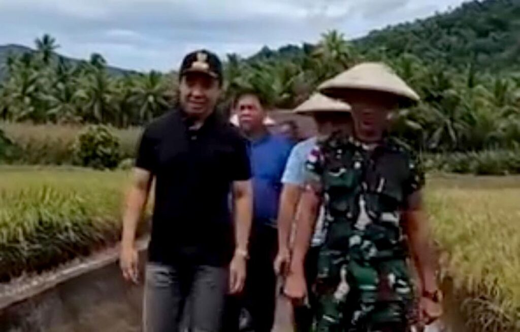 Selepas kegiatan di Manganitu Selatan, rombongan melanjutkan agenda ke Kecamatan Tamako. Di lokasi tersebut, Bupati melakukan penanaman cabai di lahan Kelompok Tani Senggighilang, Kampung Kalinda I, sekaligus menyerahkan bantuan benih padi ladang melalui Program Ketahanan Pangan APBN Tahun 2025.