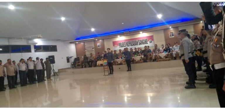 Tahuna, Kliktimur.com – Bupati Kabupaten Kepulauan Sangihe, Michael Thungari, S.E., M.M., memimpin Apel Gelar Pasukan Operasi Kepolisian Terpusat “Ketupat Samrat 2026” yang berlangsung di Aula Sanika Satyawada Polres Kepulauan Sangihe, Kamis (12/03/2026). Kegiatan tersebut dirangkaikan dengan pemusnahan barang bukti minuman beralkohol serta obat-obatan terlarang hasil tangkapan kepolisian.