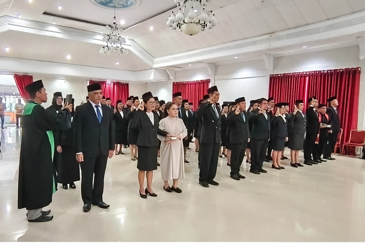 Pelantikan dan pengambilan sumpah jabatan tersebut berlangsung di ruang serbaguna Rumah Jabatan Bupati, Kamis (12/03/26).