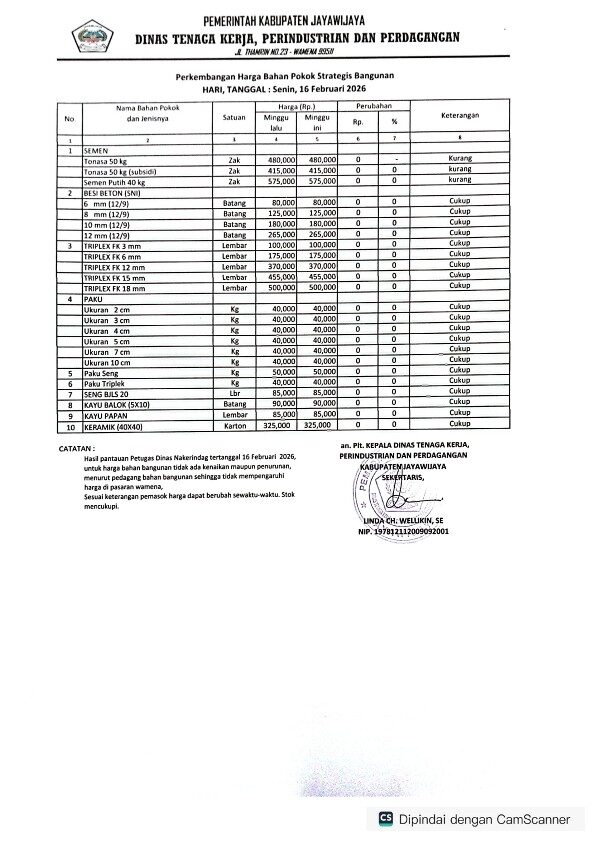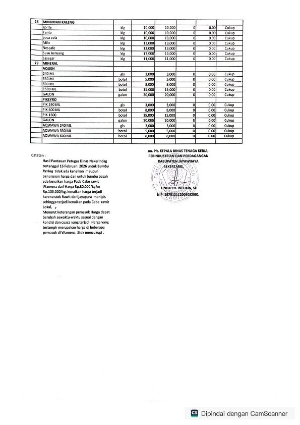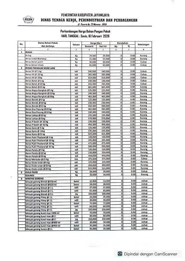 Ia menambahkan, Pemerintah Kabupaten Jayawijaya telah menetapkan harga satuan untuk beberapa komoditas tertentu guna mengantisipasi lonjakan harga yang tidak terkendali.