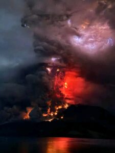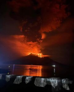 Gunung Ruang Kian Meraung Naik ke Level 4, Tagulandang Hujan Batu, Air Laut Dikabarkan Mulai Menyusut