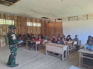 Satgas Pamtas Yonif 511/DY Ajar Anak-Anak di SD Inpres Brume Distrik Balingga