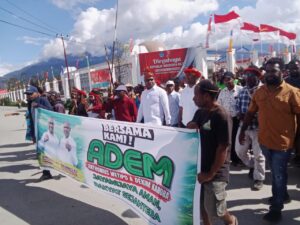 Jalur Independen, Paslon Putra Asli Wamena Jayawijaya Wetipo – Karoba Resmi Mendaftar Diiringi Ribuan Massa
