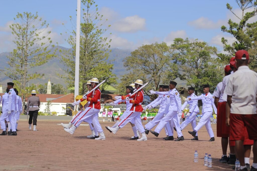Wamena,Kliktimur.com – Bertindak sebagai Instruktur Upacara pada upacara Peringatan HUT RI ke 80, Bupati Kabupaten Jayawijaya, Athenius Murib, SH, MH mengimbau agar semua warga Jayawijaya bersatu dan berdaulat membangun kesejahteraan seluruh masyarakat di daerah itu.