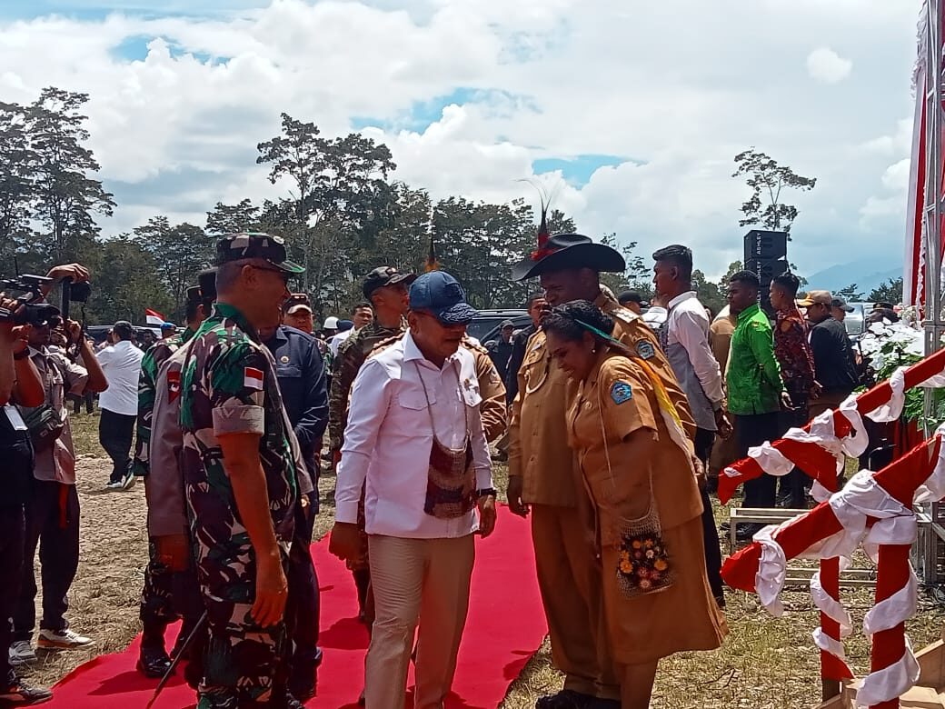 “Pembangunan harus dalam keadaan damai. Tidak mungkin ada pembangunan dalam keadaan tidak damai dan tidak aman. Mari kita bergandengan tangan, dengan kasih Tuhan, membangun wilayah Papua Pegunungan,” ujarnya.