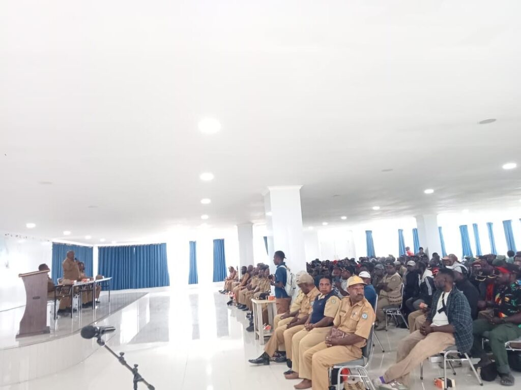 Wamena, kliktimur.com – Pemerintah Kabupaten Jayawijaya menggelar evaluasi penyaluran Dana Desa (DD) tahap I tahun anggaran 2025 terhadap 328 Pelaksana Tugas (Plt) kepala kampung se-Kabupaten Jayawijaya. Kegiatan ini berlangsung di Aula Sasana Wio, lantai satu Kantor Bupati Jayawijaya, Selasa (4/11/2025), di Wamena, Provinsi Papua Pegunungan.