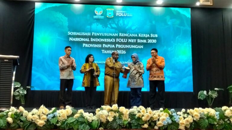 Wamena, kliktimur.com – Pemerintah Provinsi Papua Pegunungan menegaskan komitmennya mendukung pencapaian target Indonesia’s FOLU Net Sink 2030 serta penguatan peran daerah dalam NDC sektor kehutanan. Hal itu disampaikan dalam kegiatan yang difasilitasi Kementerian Kehutanan di Wamena, dalam rangka “Sosialisasi penyusunan rencana kerja sub nasional Indonesia flou net sink 2030 provinsi Papua pegunungan tahun 2026.”Pemerintah Provinsi Papua Pegunungan, Gubernur john Tabo di wakili, PLT sekertaris Daerah provinsi Wasuok Demianus Siep. Membuka kegiatanMembacakan sambutan, pada Selasa, (21/4/2026) di salah satu hotel balim pilamo WamenaLuas Hutan Papua Pegunungan Capai 5,12 Juta HektareDalam sambutan, diwakili gubernur John Tabo, membacakan sambutan wasuok Demianus siep” sampaikan bahwa Provinsi Papua Pegunungan merupakan daerah otonom baru hasil pemekaran dari Provinsi Papua berdasarkan UU Nomor 16 Tahun 2022. Provinsi ini membawahi delapan kabupaten: Jayawijaya sebagai ibu kota provinsi, Yalimo, Pegunungan Bintang, Nduga, Mamberamo Tengah, Yahukimo, Tolikara, dan Lani Jaya.Papua Pegunungan memiliki kawasan hutan seluas 5.120.131,29 hektare. Rinciannya: Hutan Produksi Terbatas 474.745,07 hektare atau 9,27%, Hutan Produksi 341.866,48 hektare atau 6,68%, Hutan Produksi yang Dapat Dikonversi 502.510,71 hektare atau 9,81%, Hutan Lindung 1.840.415,49 hektare atau 35,94%, dan Hutan Konservasi 1.802.624,72 hektare atau 35,20%.Selain kawasan hutan, terdapat kawasan non-hutan atau Areal Penggunaan Lain seluas 159.166,33 hektare yang dapat digunakan untuk pembangunan di luar sektor kehutanan.Peran Strategis Turunkan EmisiDengan luas kawasan hutan alam yang masih relatif terjaga, Papua Pegunungan disebut memiliki peran strategis dalam menurunkan emisi gas rumah kaca serta mengelola dampak krisis iklim.“Provinsi Papua Pegunungan sebagai salah satu wilayah dengan potensi serapan karbon sangat besar melalui fungsi hutan alam dan rehabilitasi hutan dan lahan. Sehingga pengelolaan kawasan hutan secara berkelanjutan, pengendalian alih fungsi lahan, dan optimalisasi rehabilitasi pada kawasan hutan dan non hutan yang terdegradasi merupakan penyeimbang antara pembangunan dan konservasi lingkungan,” tegasnya.Secara khusus, peran Provinsi Papua Pegunungan dalam mencapai target FOLU Net Sink 2030 dinilai sangat penting karena luasnya tutupan hutan alam yang masih terjaga.Kegiatan ini menjadi bagian dari upaya memperkuat kolaborasi pemerintah pusat dan daerah untuk memastikan target penurunan emisi sektor kehutanan tercapai, sekaligus menjaga keberlanjutan pembangunan di Papua Pegunungan. Gadiel gombo.Caption keterangan foto:suasana pembukan ,Sosialisasi penyusunan rencana kerja sub nasional Indonesia flou net sink 2030 provinsi Papua pegunungan tahun 2026.” PLT Sekertaris provinsi Papua pegunungan Wasuok Demianus siep, dampingi. prof .Dr. Haruni Krisnawati , S,Hut..,M.Si.., Sebagi staf alih Mentri kehutanan bidang perubahan iklim selaku ketua harian Indonesia folu net, sink 2030. Di salah satu hotel paling pilamo wamena Selasa (21/4/2026) (gadiel gombo)