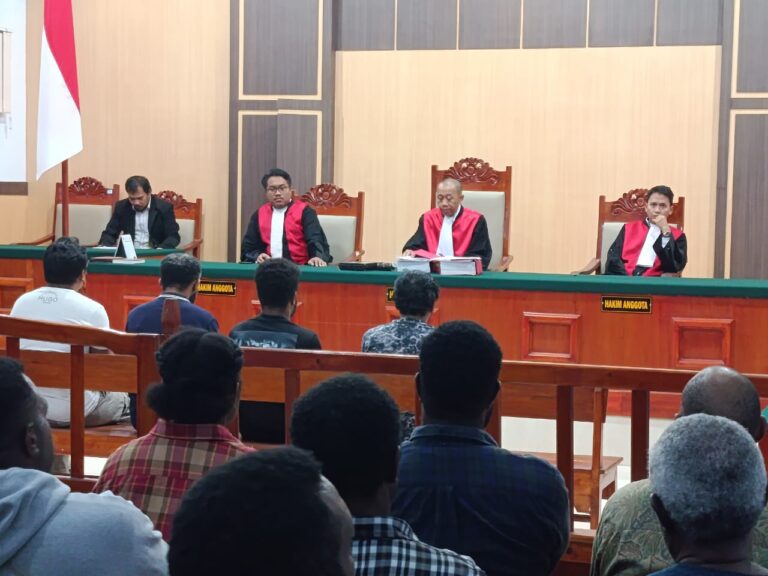 Wamena,Kliktimur.com – Sidang kasus penembakan yang menewaskan staf Bawaslu Kabupaten Yakuhimo, Tobias Silak, memasuki tahap pembacaan penundaan putusan sela.