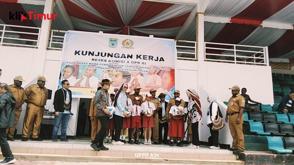 WAMENA, KLIKTIMUR.COM – Suasana penuh semangat terlihat di SD Inpres Kulitarek, Wamena. Para siswa menyambut antusias kedatangan rombongan Dewan Perwakilan Rakyat Republik Indonesia (DPR RI) Komisi X dalam agenda kunjungan kerja (kunker) reses ke Provinsi Papua Pegunungan, Senin (6/10/2025).