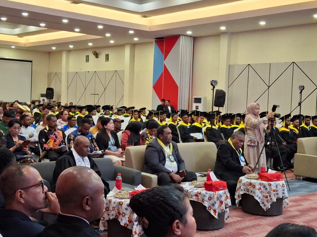 Rektor menegaskan komitmen universitas dalam meningkatkan kualitas pendidikan dan pengembangan SDM di Papua Pegunungan. Ia berharap para wisudawan dapat menjadi pemimpin berintegritas serta mampu memberikan kontribusi positif bagi masyarakat (Gadiel Gombo)