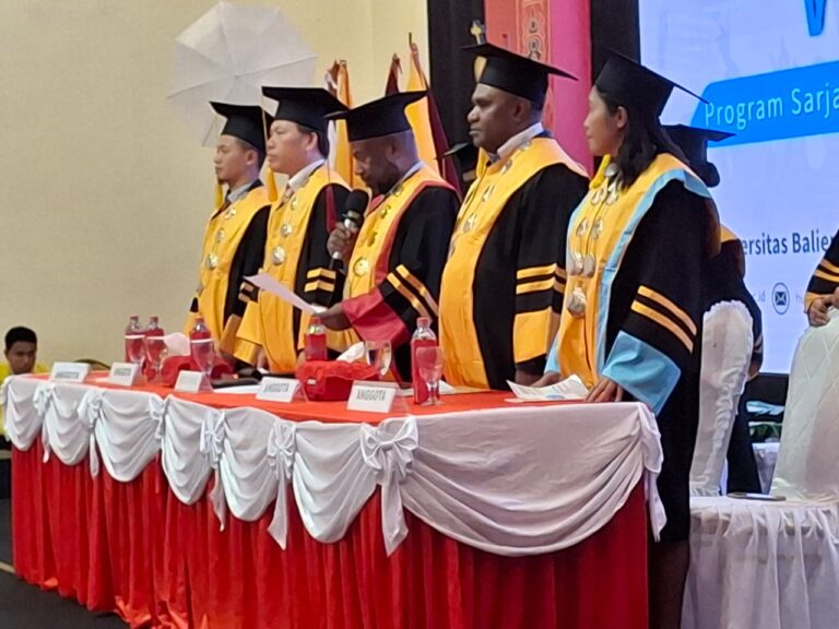 WAMENA, KLIKTIMUR.COM– Universitas Balim Papua (UNIBA) mewisuda 83 mahasiswa dari dua program studi, yakni Sistem Informasi dan Teknik Komputer, dalam Sidang Senat Terbuka ke-7 Tahun 2025. Prosesi wisuda digelar di Hotel Baliem Pilamo Wamena, Jumat (21/11/2025), di Provinsi Papua Pegunungan.Rektor Universitas Balim Papua, Marthen